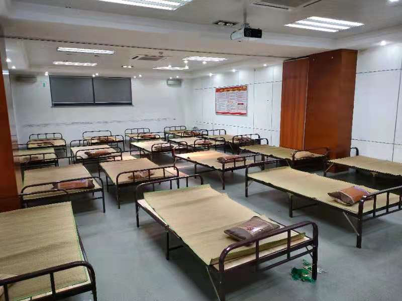 在前一日下午,物流中心即向員工征求了集中住宿進(jìn)行自主隔離的意見,尤其是物流中心的領(lǐng)導(dǎo)們帶頭,各經(jīng)理及主管積極響應(yīng),物流員工紛紛報名。不少人家里存在這樣那樣的困難,但聽說是呵護(hù)國控?fù)P州這個共同的家園,大家都表示要克服一切困難,堅決參加。8月3日,鑒于嚴(yán)峻的形勢,公司決定在公司內(nèi)部搭建簡易床鋪。